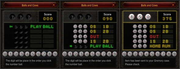 – 3S: Adivino correctamente todos los numero ocultos y sus posiciones y el mini juego acabará.
