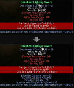 Knight Blade Excellent +9+S+L+xdmg/level/20/speed