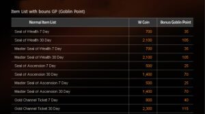 Al comprar artículos Mu Item Shop vienen con un bono de Puntos Goblin(GP)