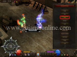 – En la ventana del party, haga clic izquierdo sobre el personaje o mantener presionado la tecla Alt + clic derecho ((Auto move to Party Members) )sobre el personaje que desea moverse.