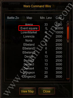– El «Event Map Square» es la región donde podrás ingresar a los principales eventos de Mu Online.