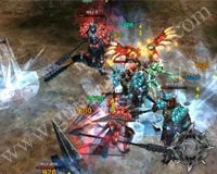 El Gun Crusher ataca a todos los objetivos asu alrededor, crea fragmentos de hielo rotos que inflingen daño.